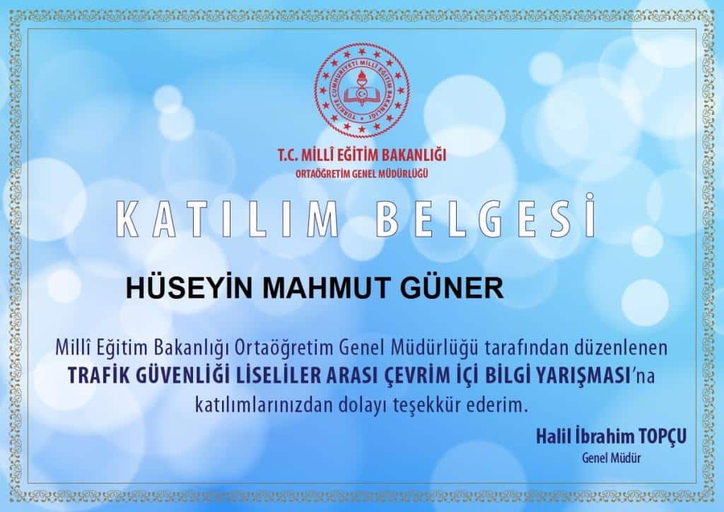 BAKANLIĞIMIZ ORTAÖĞRETİM GENEL MÜDÜRLÜĞÜ TARAFINDAN OGM MATERYAL SİTESİNDE ONLİNE OLARAK 10 MAYIS 2025 TARİHİNDE YAPILAN BİLGİ YARIŞMASINDA OKULUMUZ 10.SINIF ÖĞRENCİSİ HÜSEYİN MAHMUT GÜNER TÜRKİYE 3. SÜ OLMUŞTUR. ÖĞRENCİMİZE ÖDÜLÜNÜ İL MİLLİ EĞİTİM MÜDÜRÜMÜZ SAYIN HÜSEYİN KIR TAKDİM ETMİŞTİR. ÖĞRENCİMİZİN BAŞARILARININ DEVAMINI DİLER İL MİLLİ EĞİTİM MÜDÜRÜMÜZE TEŞEKKÜR EDERİZ.